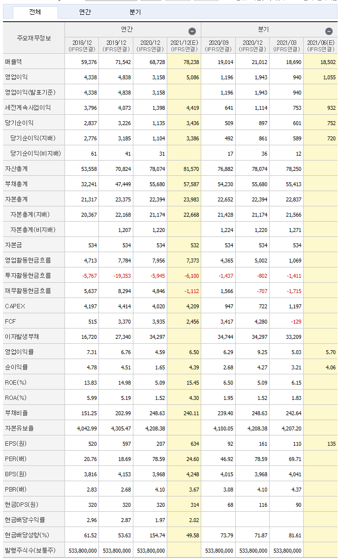 영업이익은 21년도에 증가 할 것으로 보입니다.