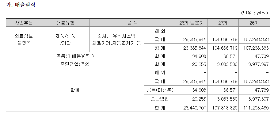 당사는 스마트 헬스케어의 핵심 기초 플랫폼이라고 할 수 있는 국내 요양기관 EMR시장점유율(45%) 1위 기업으로서 병의원/약국, 요양병원, 한방병원의 의료환경에 필요한 접수-진료/처방조제-보험청구 및 경영까지 관련 업무 효율을 극대화하는 경영 통합 솔루션을 개발, 공급하고 있습니다.