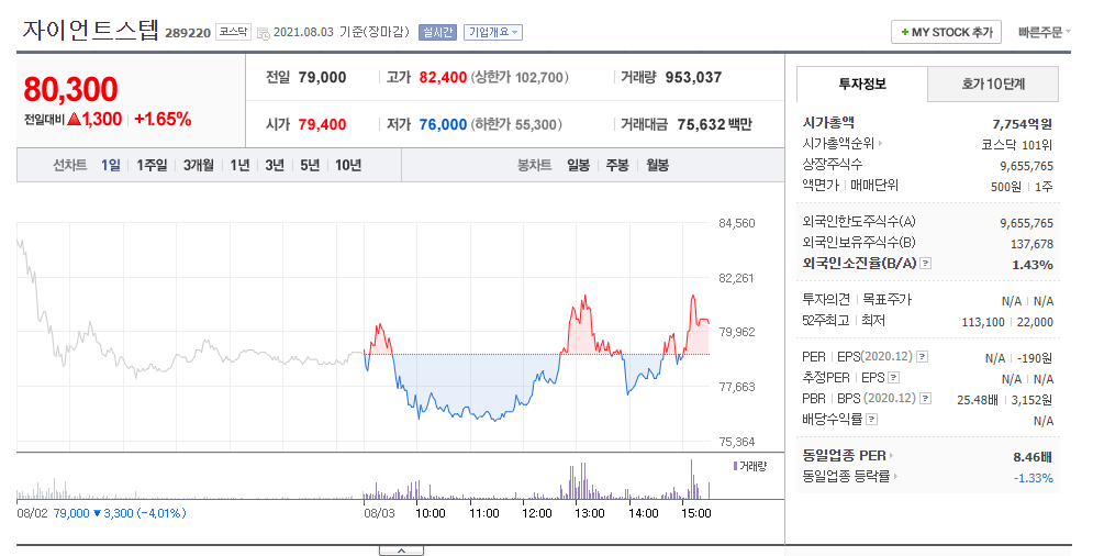 메타버스 관련주 자이언트스텝 주가 전망 분석 중 시가총액은 7,754억원이며 52주최고가는 113,100원입니다.