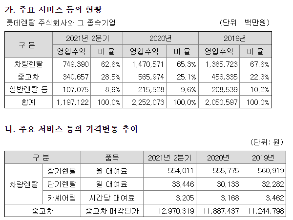 1) 차량렌탈 부문