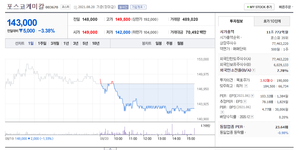 포스코그룹 계열의 소재 전문회사로 2021년 약 1조 2천 7백억원의 유상증자를 통해 대규모 투자 재원을 확보함.