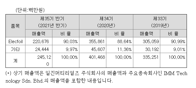 최근 경향으로 주요 완성차업체와 전기차업체가 전기차 시장을 선도하며 당사의 Elecfoil도 IT 제품보다는 전기자동차용 및 ESS용 등 중대형 전지용 매출이 증가하고 있습니다.
