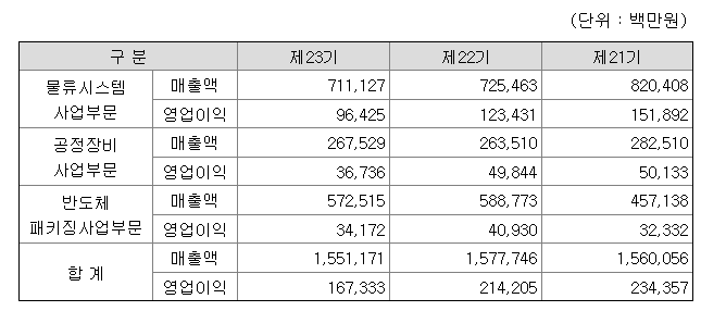 물류시스템 사업부에서 영업이익이 더 높을걸로 보입니다.