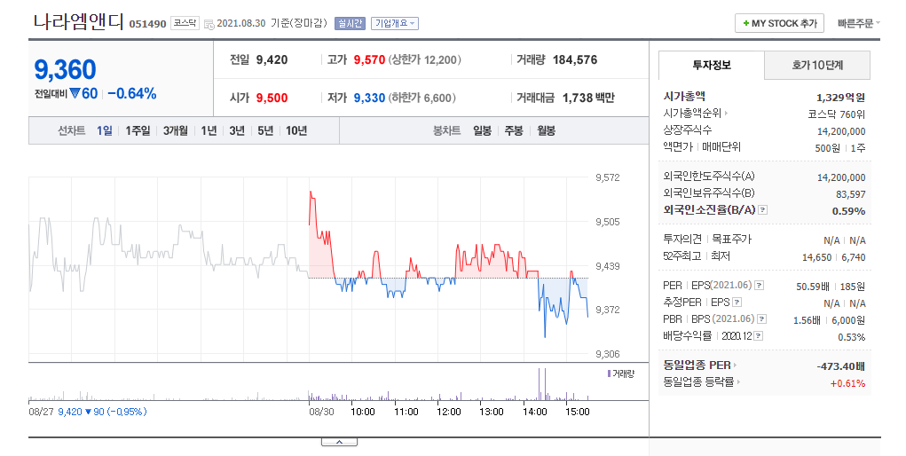 | 이차전지 부품 관련주 나라엠앤디 주가 전망 (0) | 2021.08.30 |