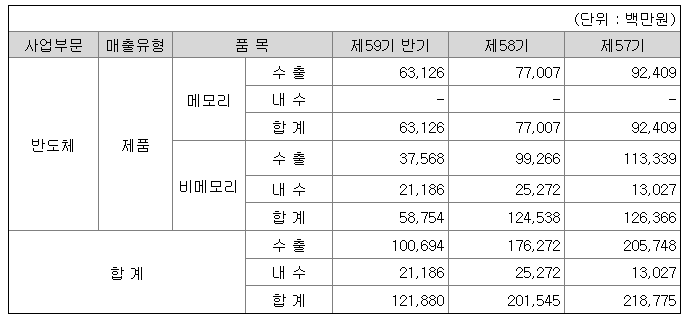 - 사업부분은 반도체이며 메모리와 비메모리 둘다 취급 하고 있습니다. 주요 매출처는삼성전자와 Broadcom 등이 있습니다.