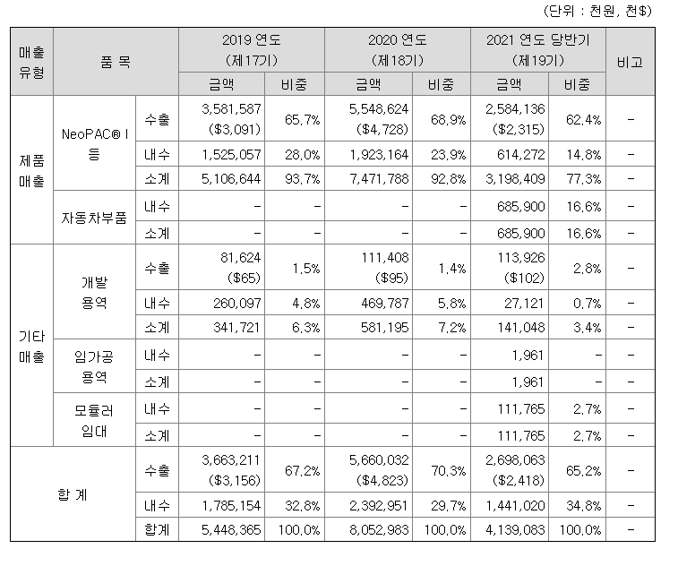 - 주요매출 비중은 NeoPAC 93.35%, 개발용역 6.65%로 구성됨.