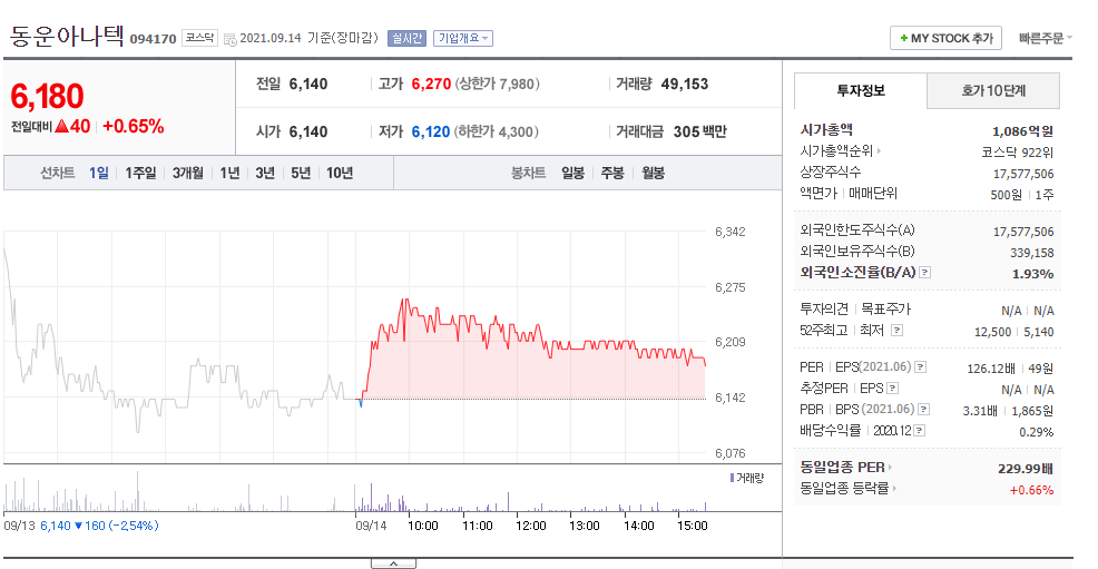 - 동일업종 PER 229,99배 / 해당 기업 PER : 126.12배