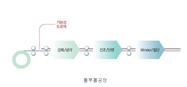 정밀자동화 사업부를 제외한 소재 사업부 및 2차전지 사업부에서 제조하는 장비들은 기본적으로 롤투롤(Roll-to-Roll) 장비의 형태를 갖추고 있습니다. 롤투롤 공정은 모재를 회전롤에 감으면서 소정의 물질을 도포하여 새로운 기능을 부가하는 공법으로 롤투롤 공정의 개요는 다음과 같습니다.