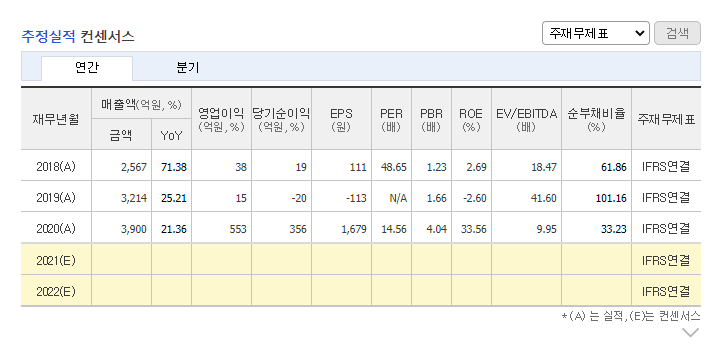 PER은 14.56, PBR은 4.04. 입니다. PBR은 괜찮지만 PBR이 상당히 높습니다. 2021년도 실적 중 PBR의 수치가 줄지 않는다면 저평가 주식이라고 판단하기엔 무리가 있어보입니다.