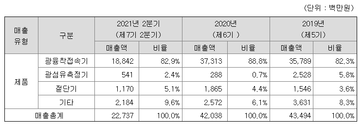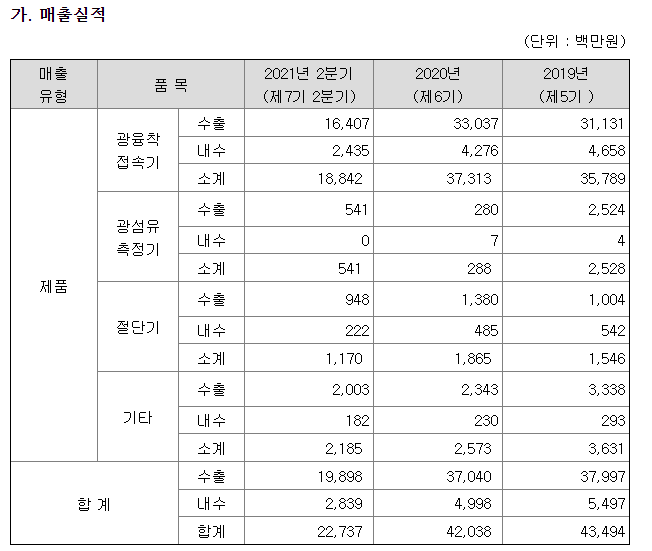 - 광융착접속기 매출액이 가장 높습니다. 매출 총계가 증가할 것으로 예상 되진 않습니다.