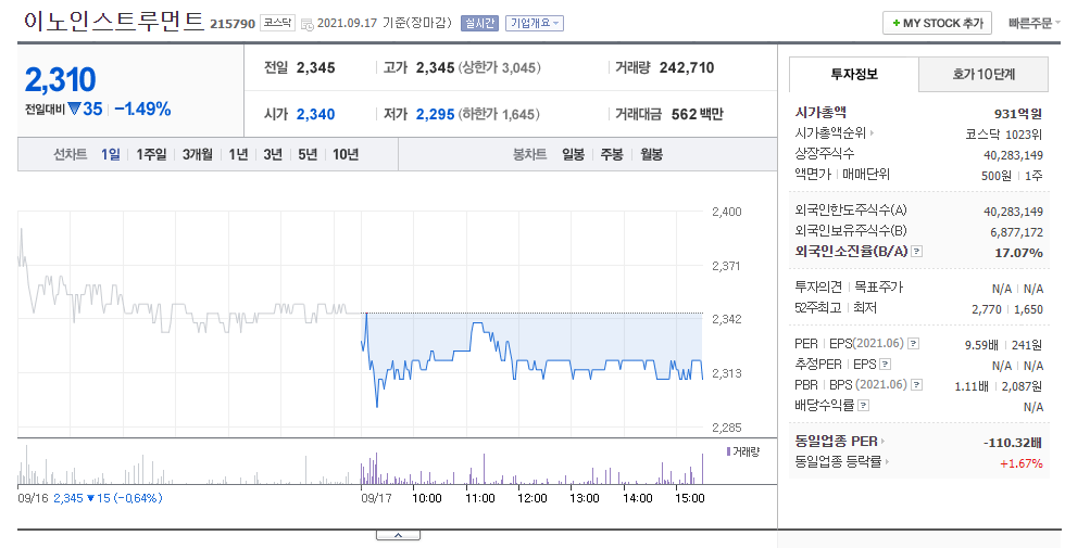 2. 이노인스트루먼트 주가 및 차트
