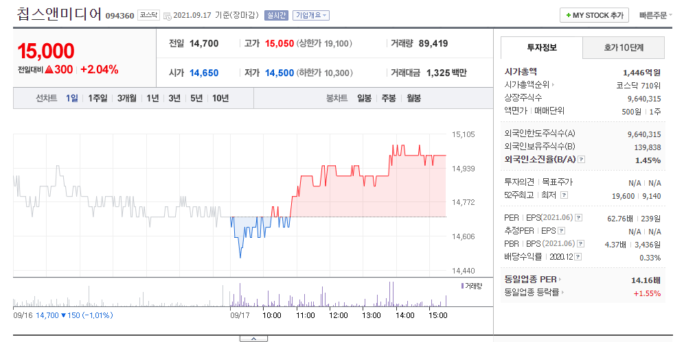 (메타버스 관련주 best 10 중 칩스앤미디어 관련 자세한 포스팅입니다.)