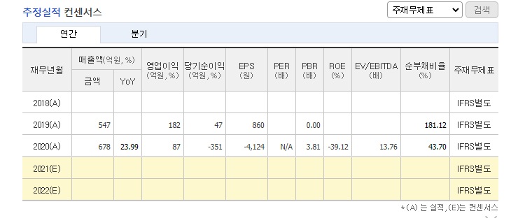 신규 회사라 그런지 네이버에서 제공하는 재무제표는 참고하기가 쉽지 않습니다.