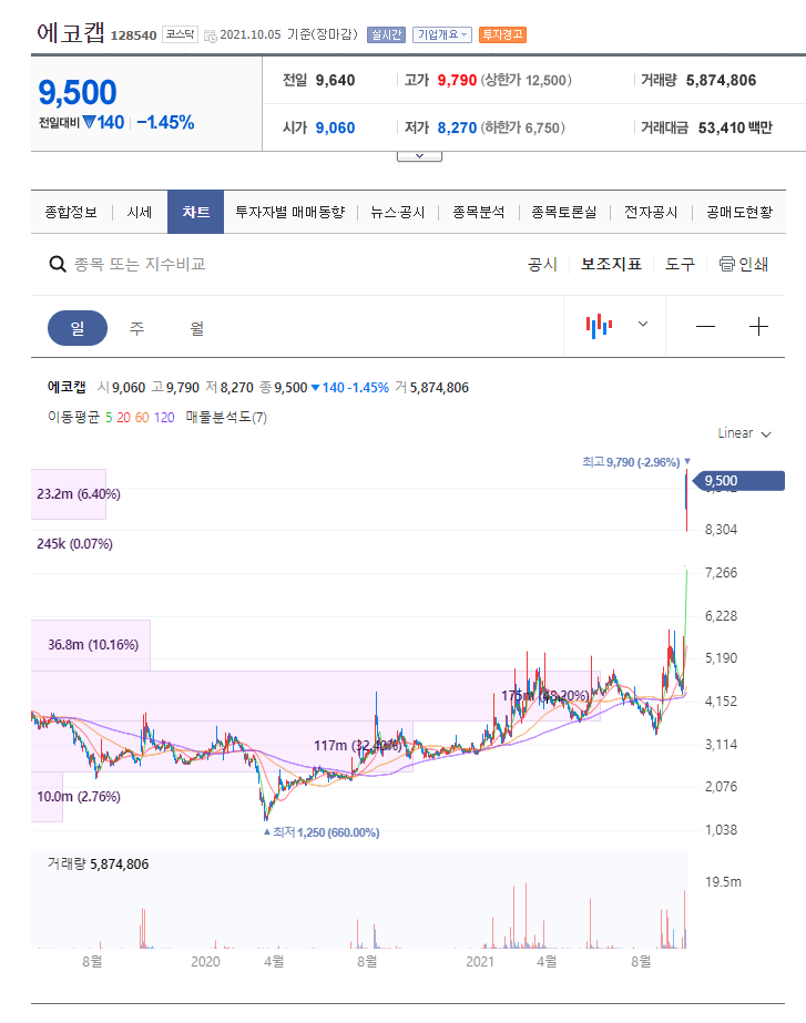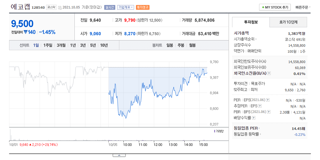 2. 에코캡 주가 및 차트