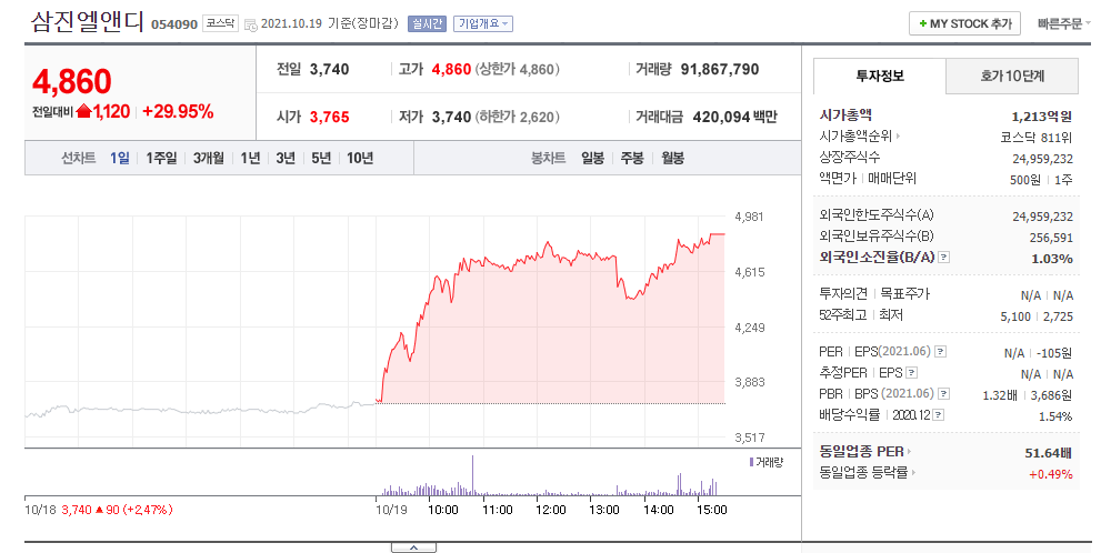 [증시이슈] 삼진엘앤디, 삼성SDI 부품 납품확대 기대감에 18%↑ : 네이버 금융