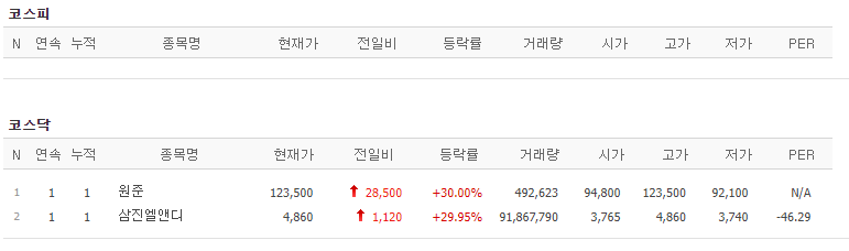 [특징주]원준, 상장 후 첫 상한가…2차 전지 기대감 : 네이버 금융