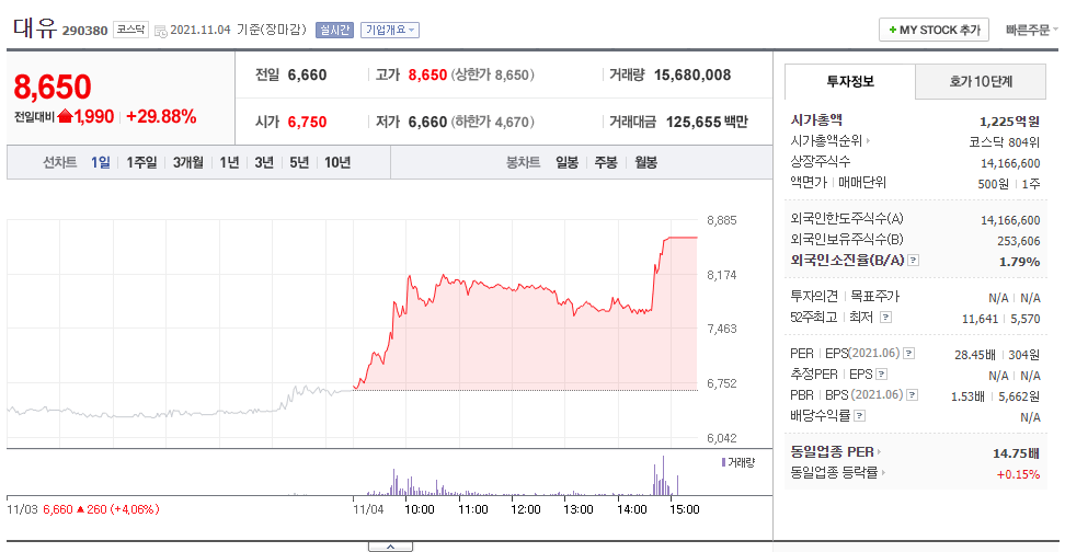 [특징주] 대유, 요소수 대란 요소비료 품귀...국내 유일 미량요소 비료 개발↑ : 네이버 금융
