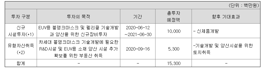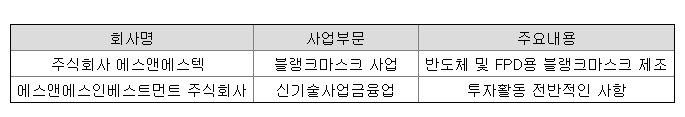 동사는 반도체 및 TFT LCD 생산에 쓰이는, 노광 공정의 핵심 재료인 포토마스크의 원재료로서 패턴이 노광되기 전 마스크인 블랭크 마스크 제조 및 판매를 영위하고 있음.