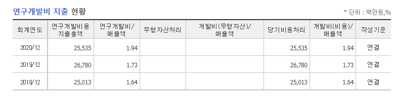- 연구개발은 꾸준하게 하고 있는 회사임.