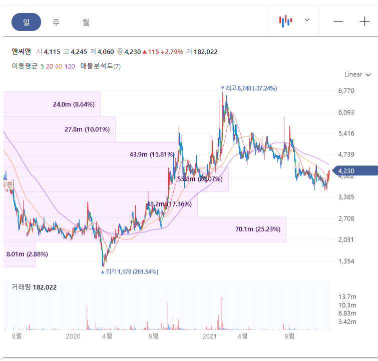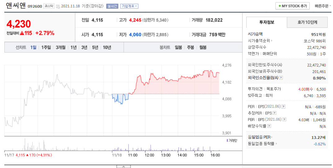앤씨앤 주가 및 차트