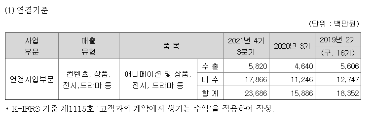 - 당사는 애니메이션, 드라마, 전시 이벤트를 주요 사업부문으로 영위하고 있는 글로벌 콘텐츠 기업으로서 각 사업부문별 목표시장과 시장의 특성이 조금씩 다른 모습을 보이고 있습니다.