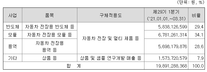차량용 반도체, 모듈이 매출액이 상당 부분을 차지하고 있습니다.