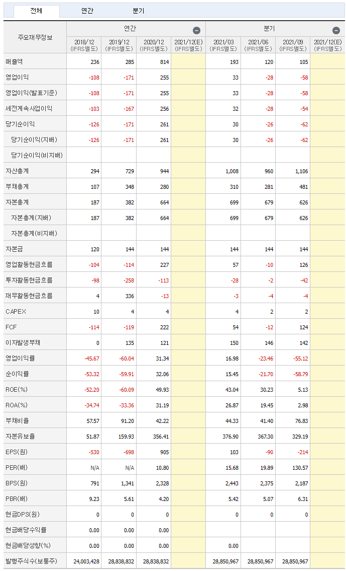 - 20년도부터 흑자로보이나 21년도 2분기 3분기는 적자였습니다.