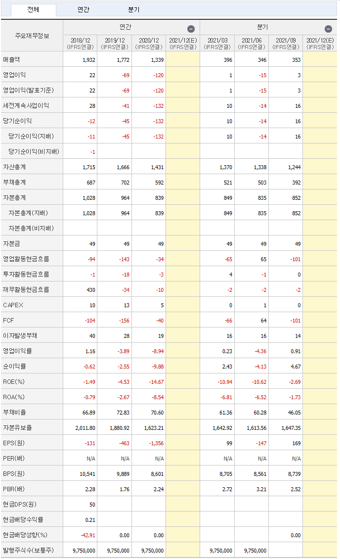 - 투자지표인 per은 N/A입니다. 올해는 EPS가 흑자이면 수치가 나올 수 있을것으로 보입니다.