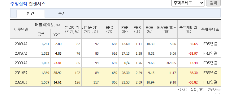 네이버에서 제공하는 재무제표 요약 본 입니다.