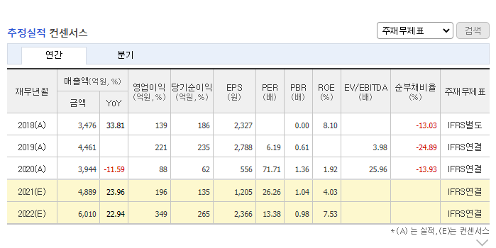 네이버에서 제공하는 요약 된 재무제표입니다.