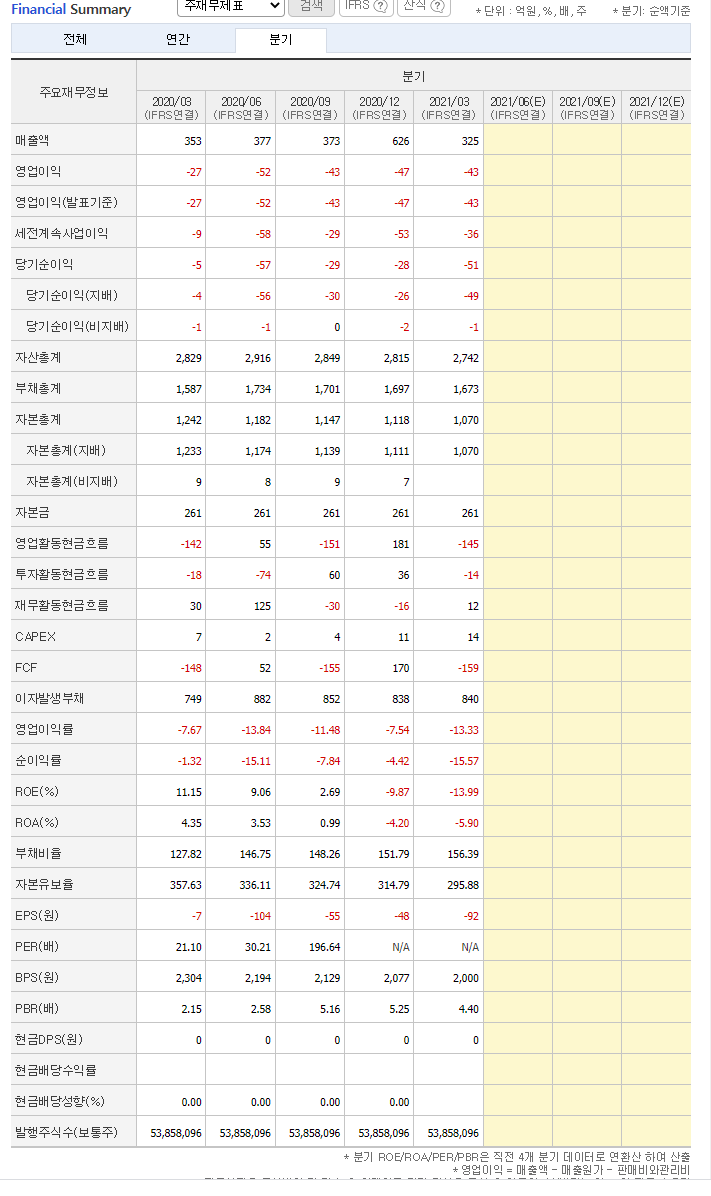 적자가 계속 나고 있으며, 부채비율은 증가하고 있습니다.