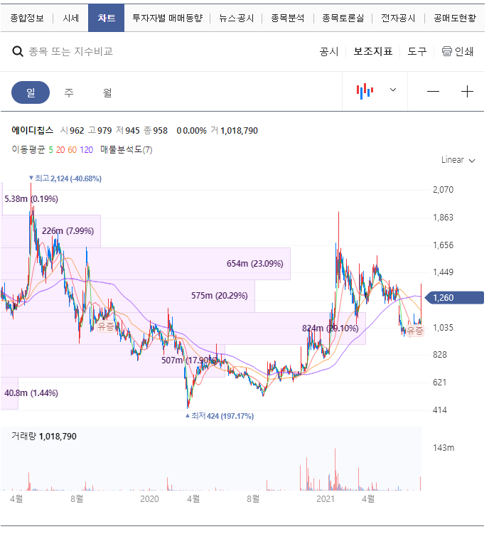 ai 반도체 관련주 에이디칩스 주가 전망 분석 중 시가총액은 668억원이며 52주최고가는 1,907원입니다.