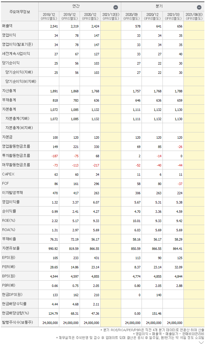 네이버에서 제공하는 재무제표입니다. 영업이익은 매년 비슷해보입니다.