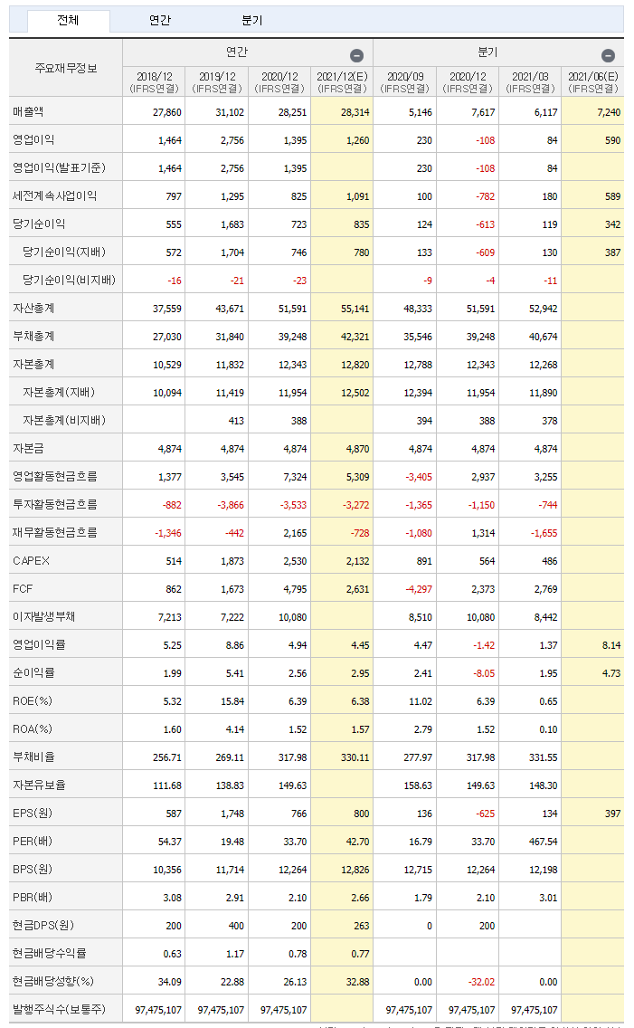 우주 산업 대장주 한국한공우주 주가 전망 분석 중 네이버에서 제공하는 재무제표입니다.