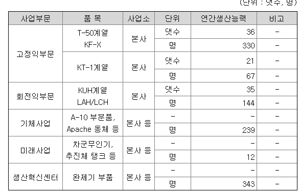 우주 산업 대장주 한국한공우주 주가 전망 분석 중 생산 할 수 있는 능력입니다.